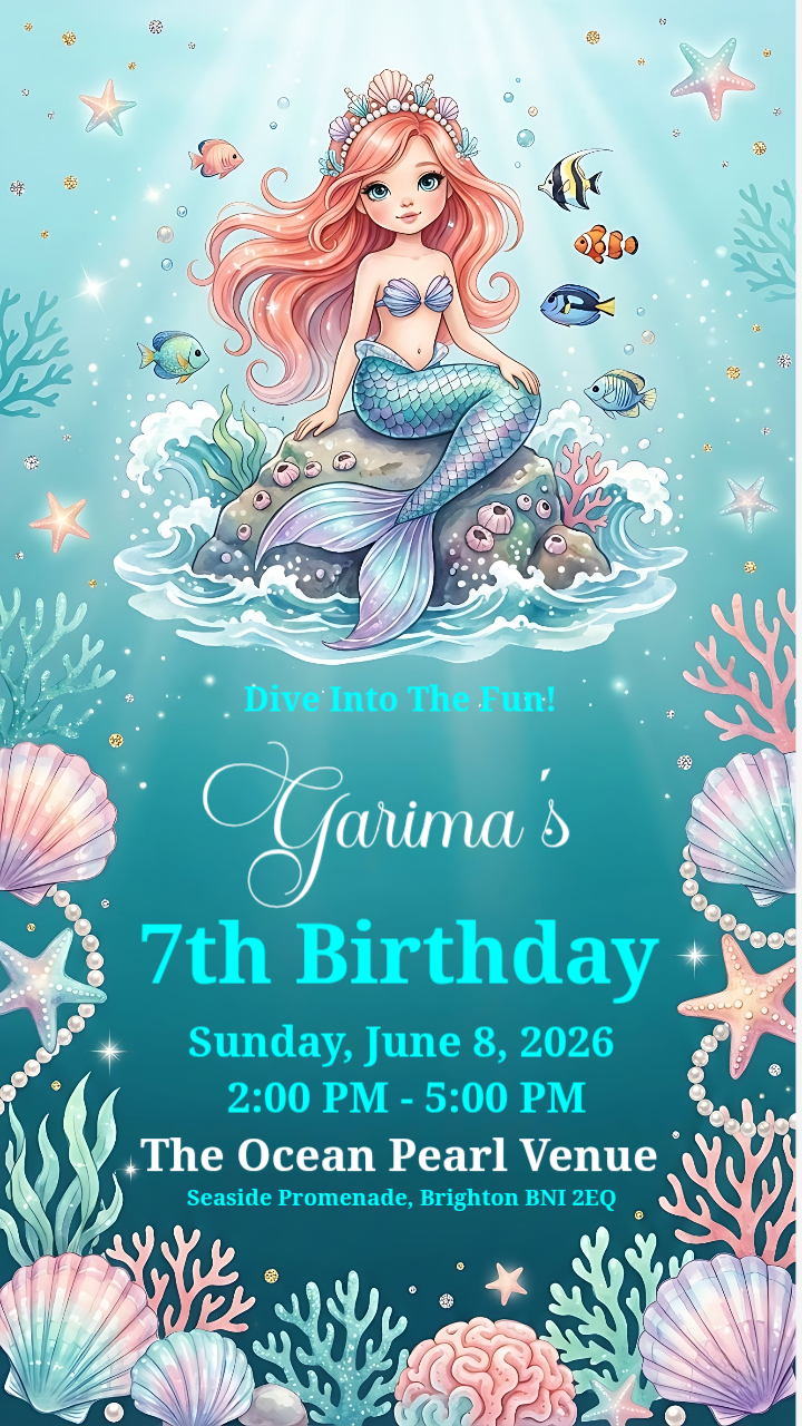 Mermaid Ocean Girls Birthday Invitation
