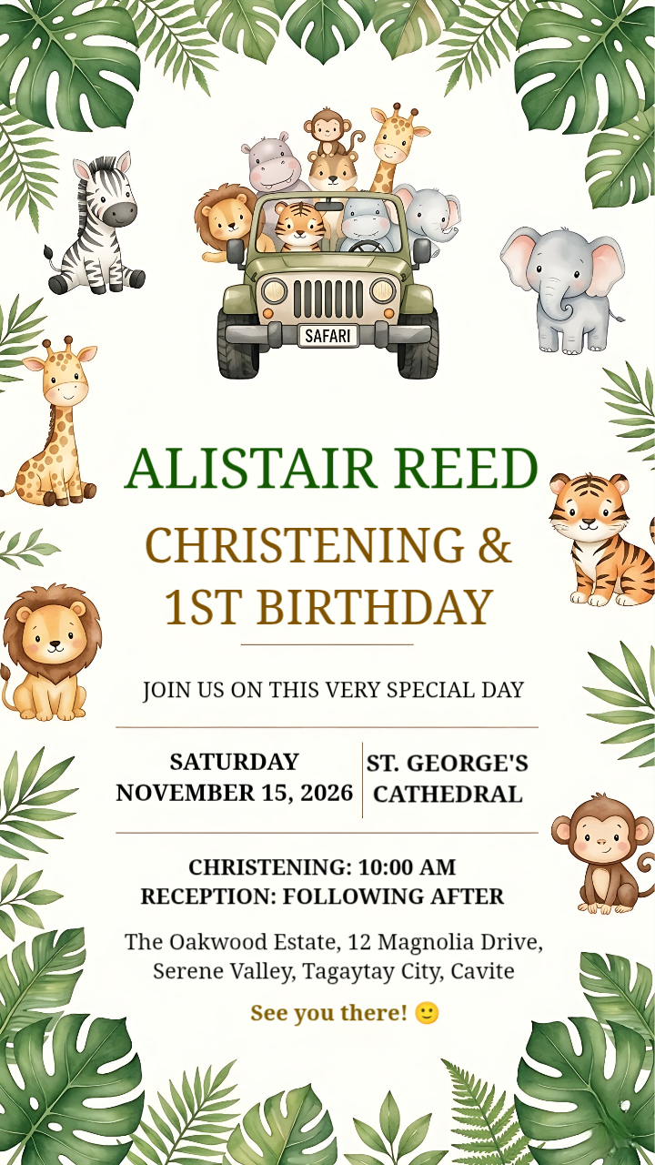 Watercolor Safari Jungle Birthday Invitation Template