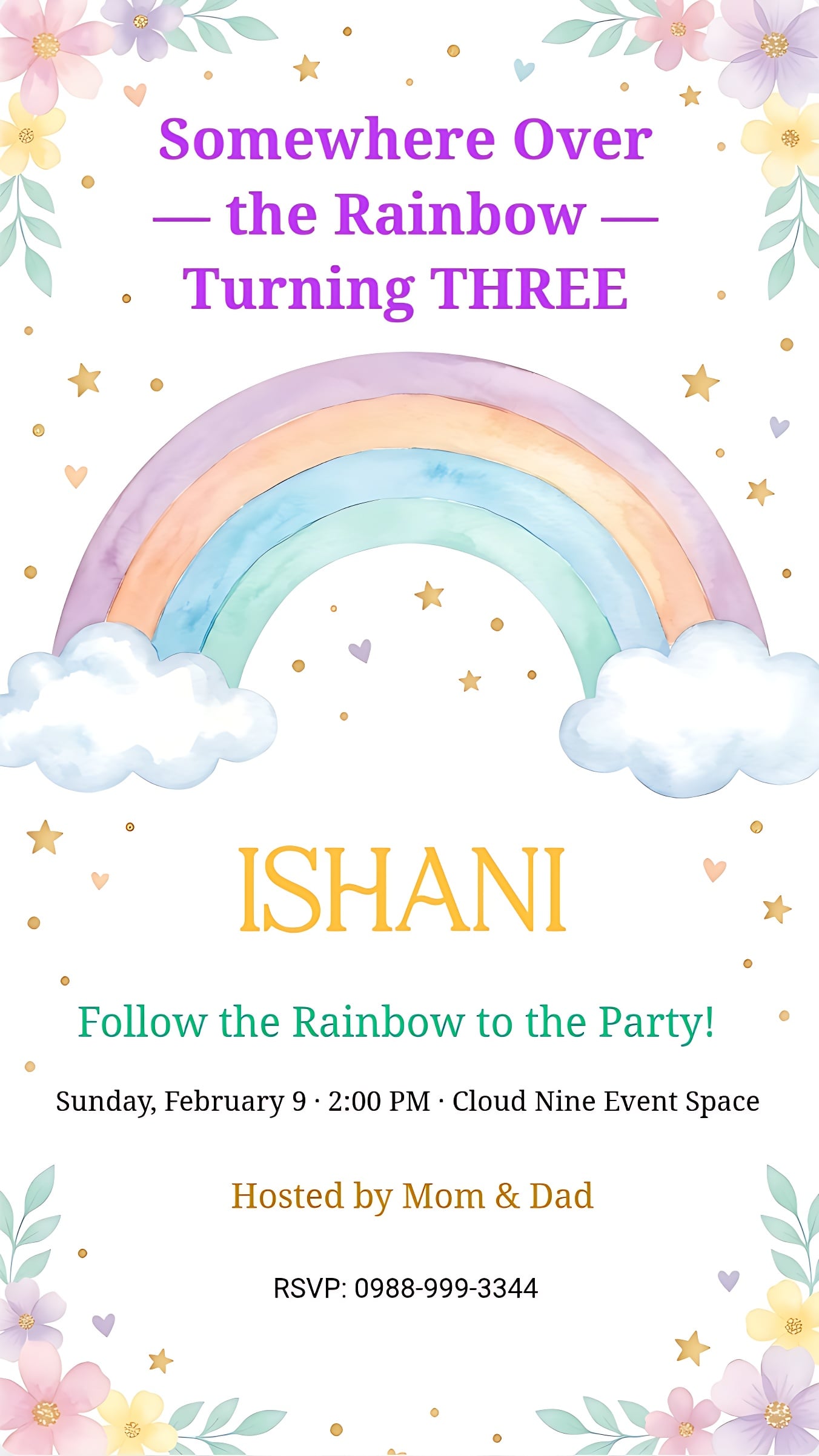 Pastel Watercolor Rainbow Birthday Invitation