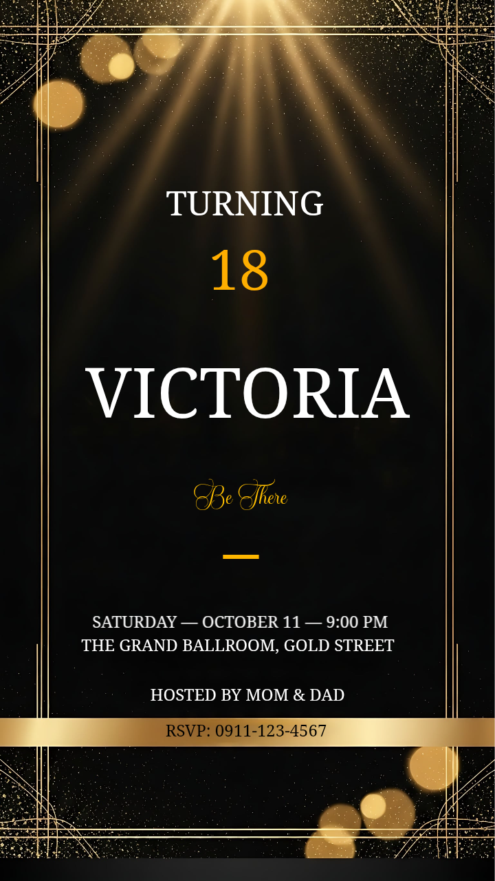 Elegant Gold Spotlight 18th Birthday Invitation
