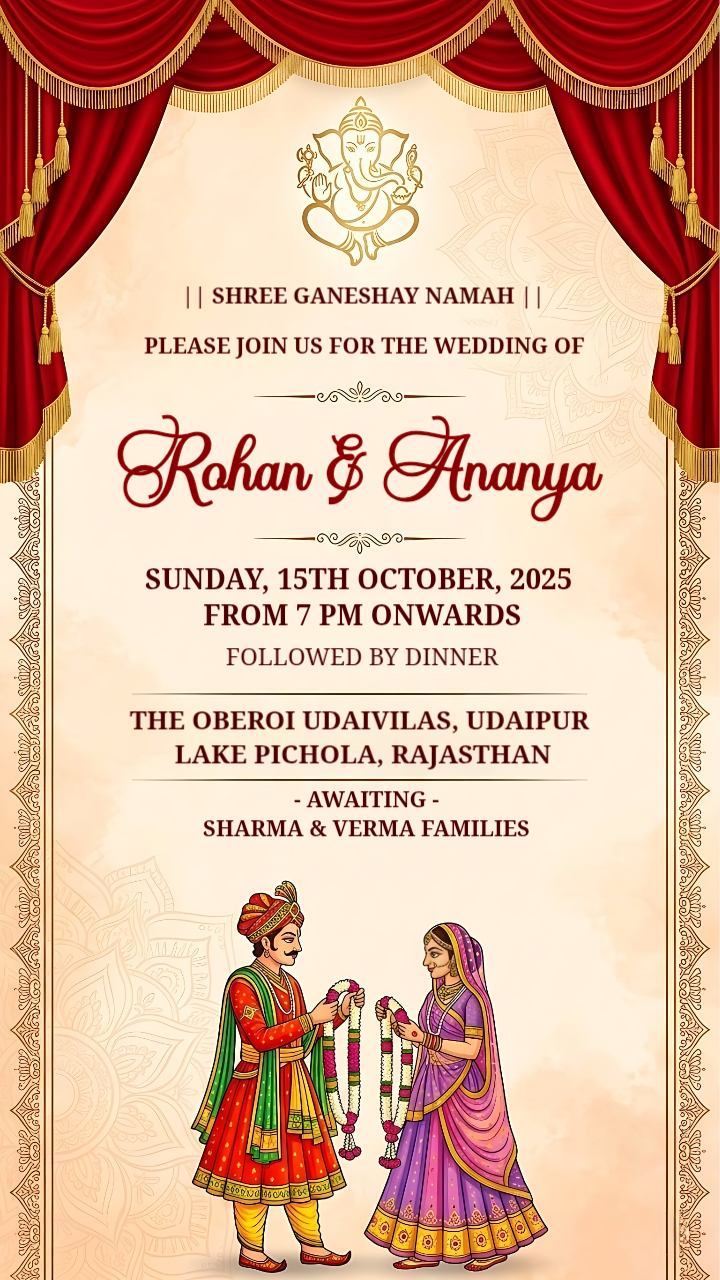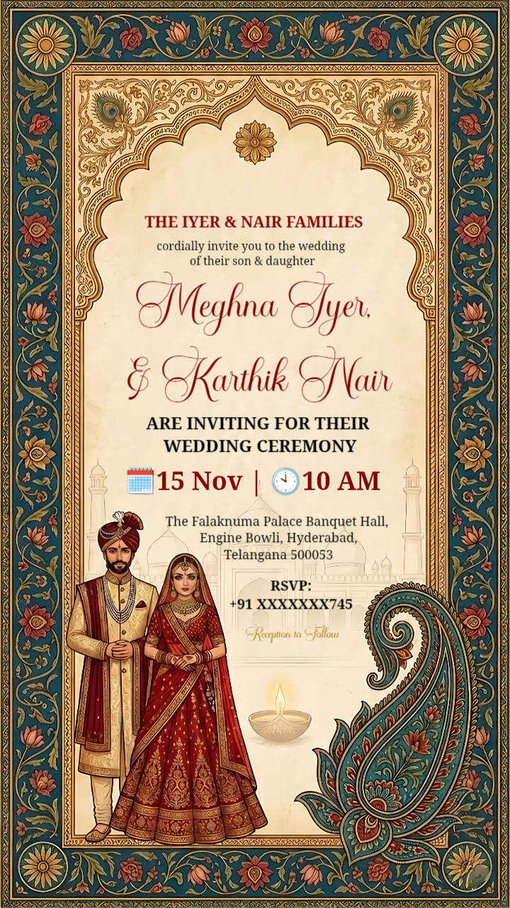 Royal Mughal Miniature Wedding Invitation Static Template