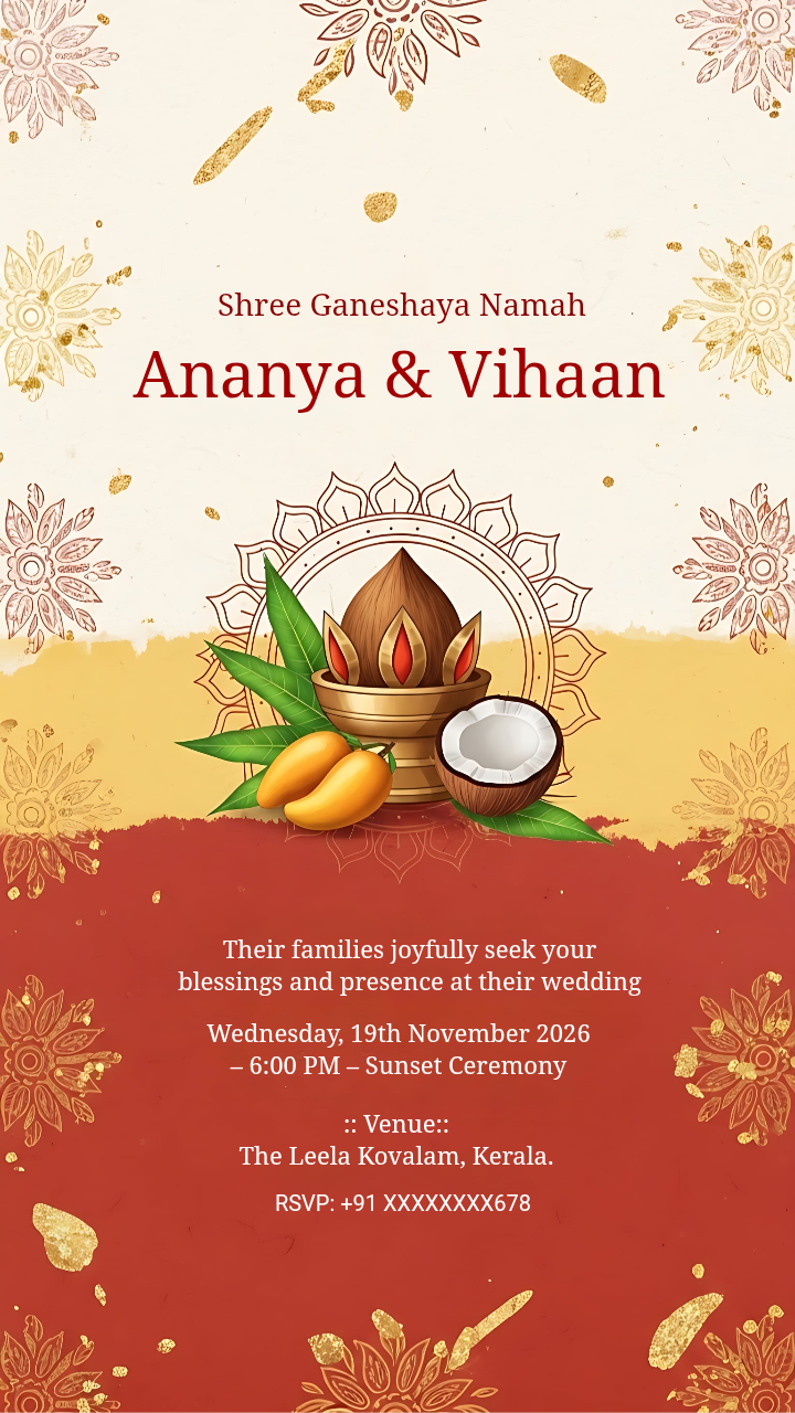 Auspicious Kalash Traditional Hindu Wedding Invitation