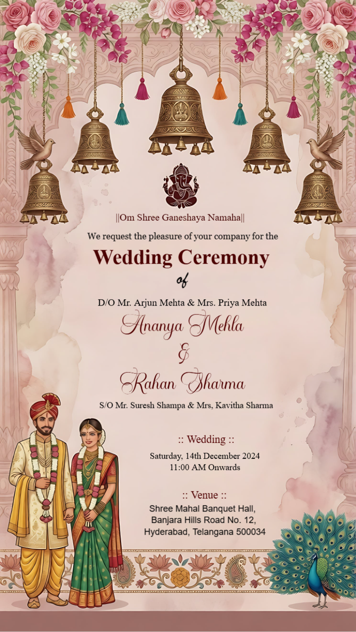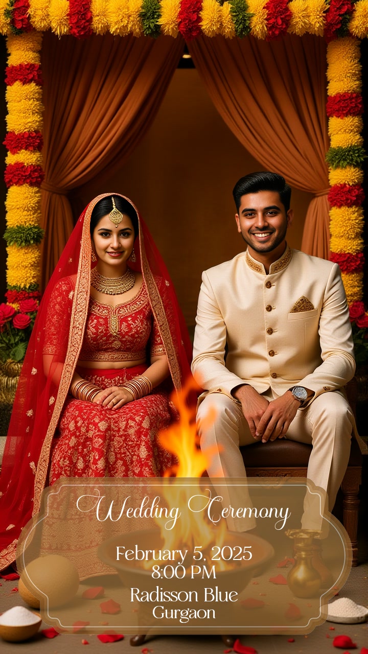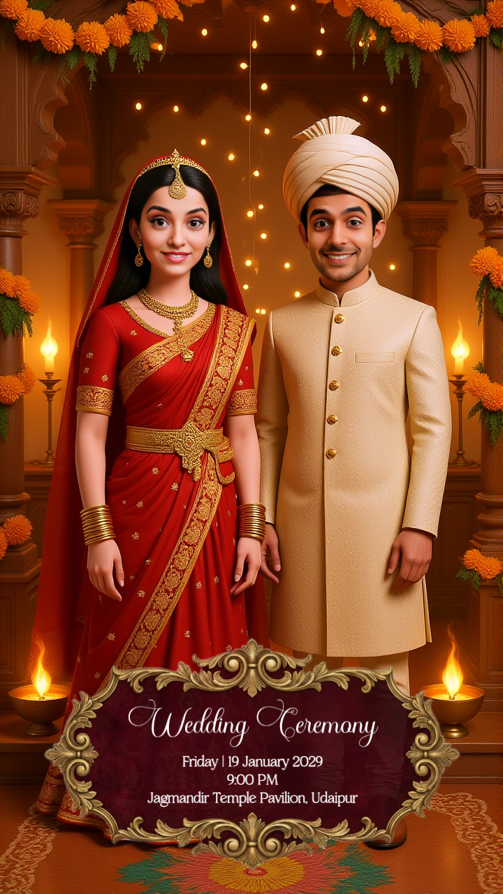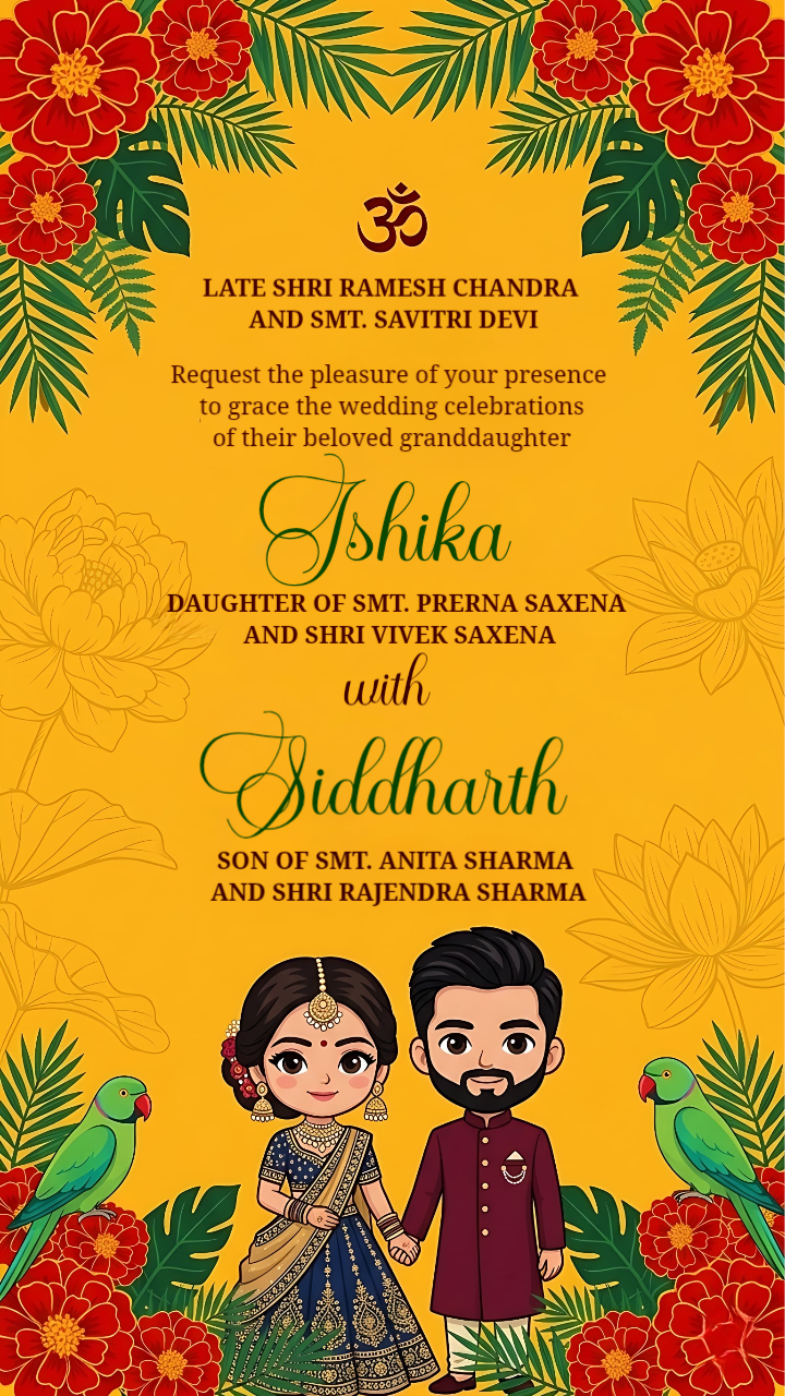 Marigold Festival Caricature Indian Wedding Invitation Static Template