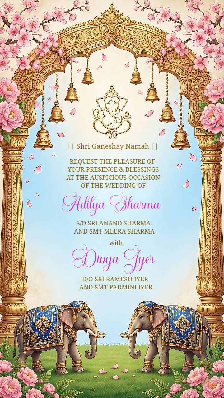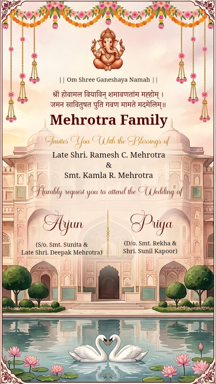 Sacred Lotus Palace Hindu Wedding Invitation Static Template