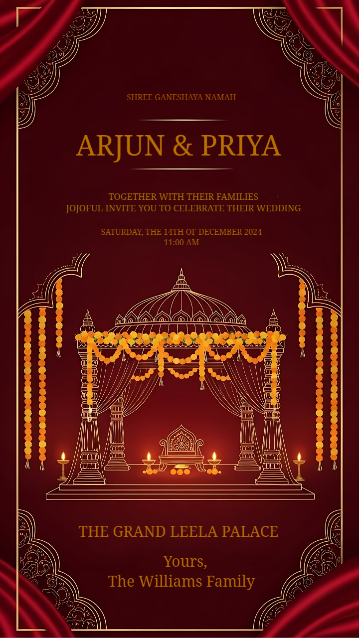 Royal Red and Gold Mandap Wedding Invitation