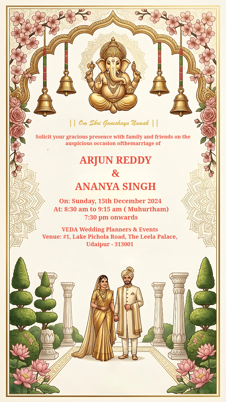 Royal Golden Ganesha Floral Indian Wedding Invitation