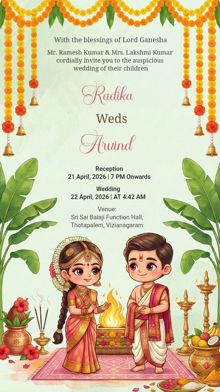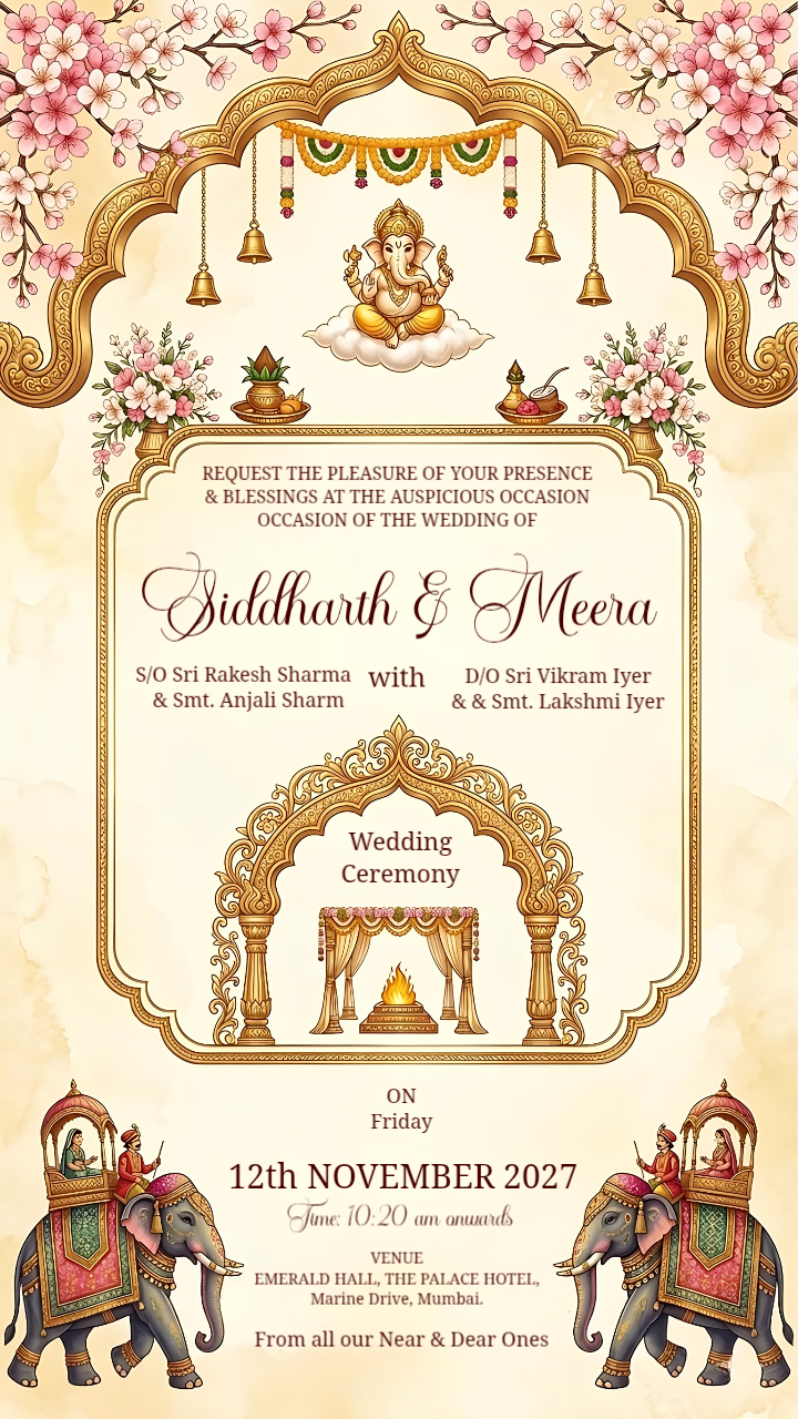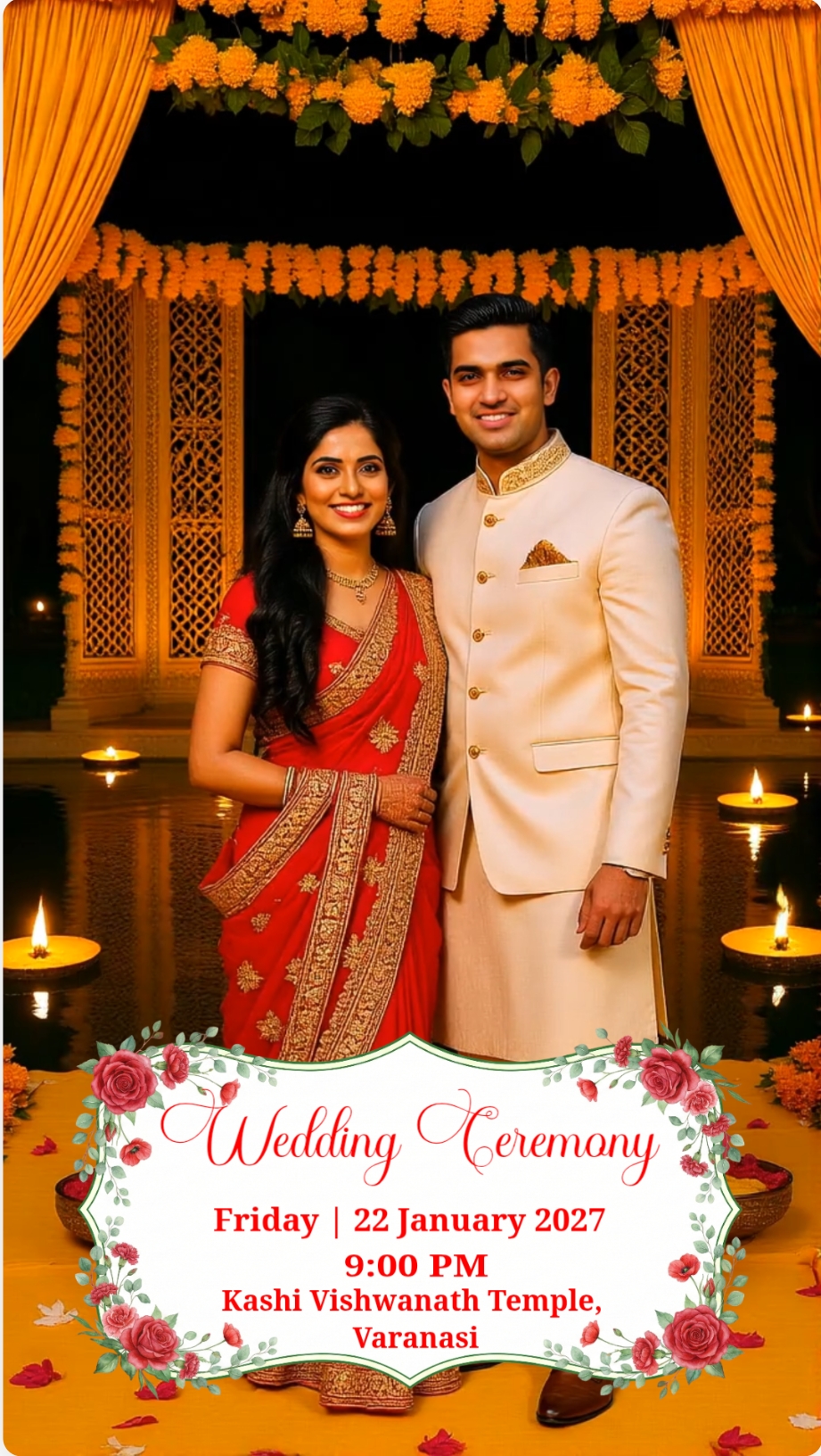 Create stunning, personalized wedding invitations with AI-generated content for all your wedding events.